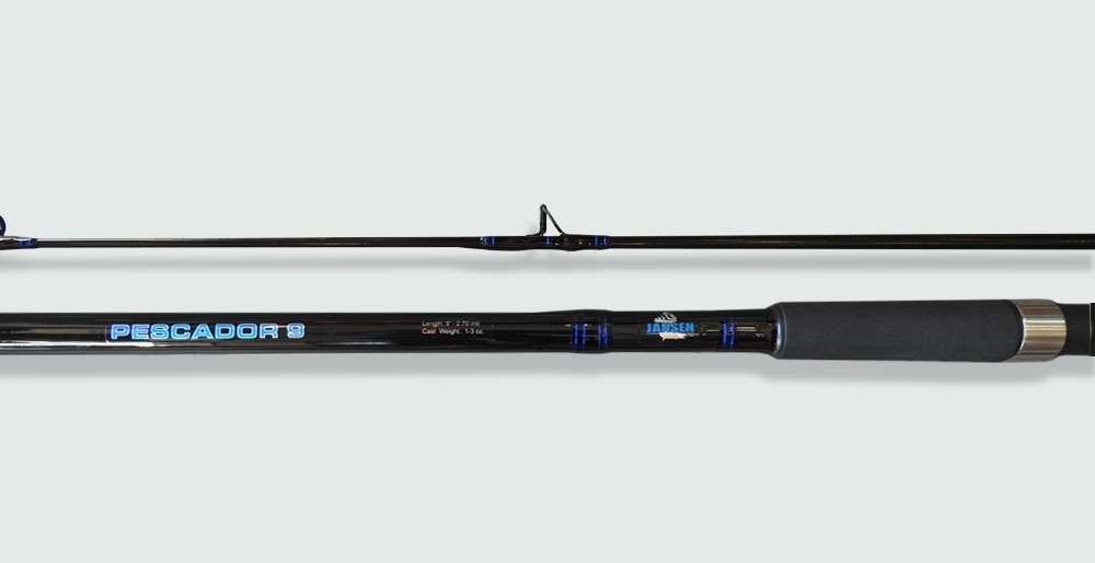 Caña de acción mediana hecha de Fibra de Vidrio con guía reforzadas. Esta linea de cañas es recomendada para principiantes ya que las cañas de fibra son muy resistentes.